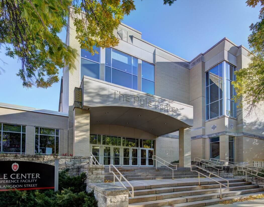 The Pyle Center is located on the UW-Madison campus on the shore of Lake Mendota within easy walking distance from the center of Madison. The Pyle Center features the Alumni Lounge conference room overlooking the water with a capacity of 280 people that is ideally suited for the single-session style of the meeting. Lunches and coffee breaks at the meeting center, an onsite banquet, and cocktail hour during poster session will offer a collegial and collaborative atmosphere throughout the meeting. Additionally, there are many nearby restaurants, cafes, and museums (including the UW’s Memorial Union Terrace pictured below) for the participants and guests of the Workshop to enjoy.