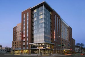 The Hilton Garden Inn is located downtown Madison, in walking distance of the University and the Kohl Center. They offer a cooked-to-order breakfast and dinner in their restaurant. A fitness center, business center, streaming TV, and free Wi-Fi are available to all guests. Parking is available for $20/day.