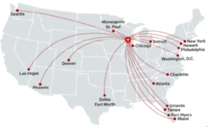 Chicago: Chicago, Illinois is located 150 miles southeast of Madison and has two international airports: Midway International Airport and O’Hare International Airport. Both airports can be found by visiting www.ohare.com – passengers can continue to Madison via car or bus; please see below for additional information on both options.